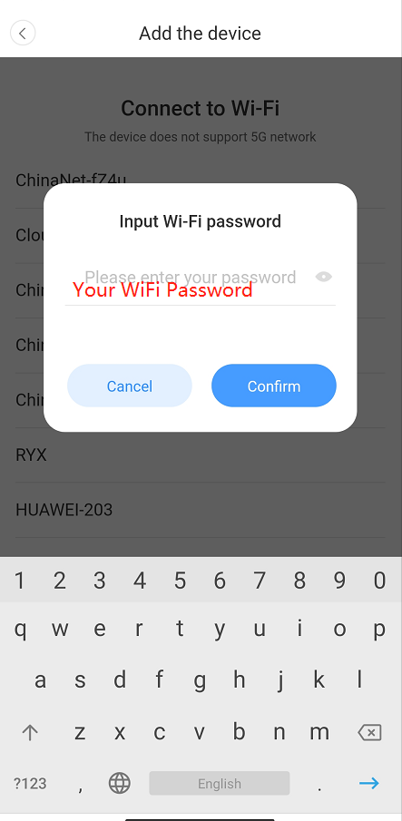 - Select your own 2.4GWi-Fi and enter your password.(5G network is not supported).
