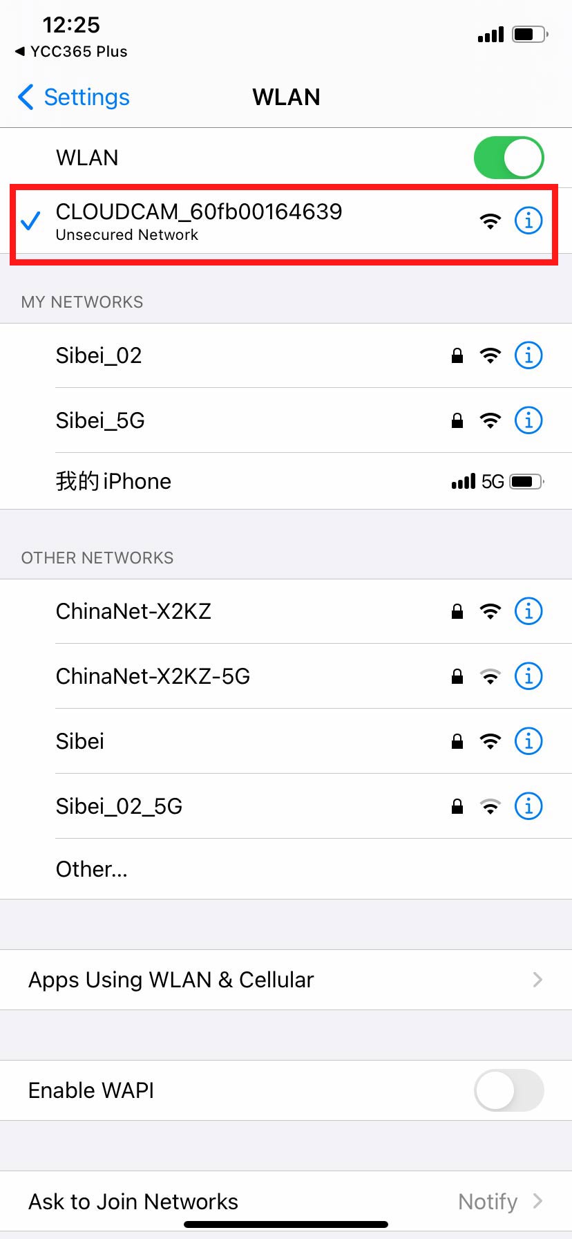 - Go to Setting Network click your phone connect to “CLOUDCAM_XXXX” network.