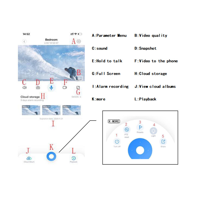 B: Switch playback path, you can choose to watch cloud playback/memory card playback.